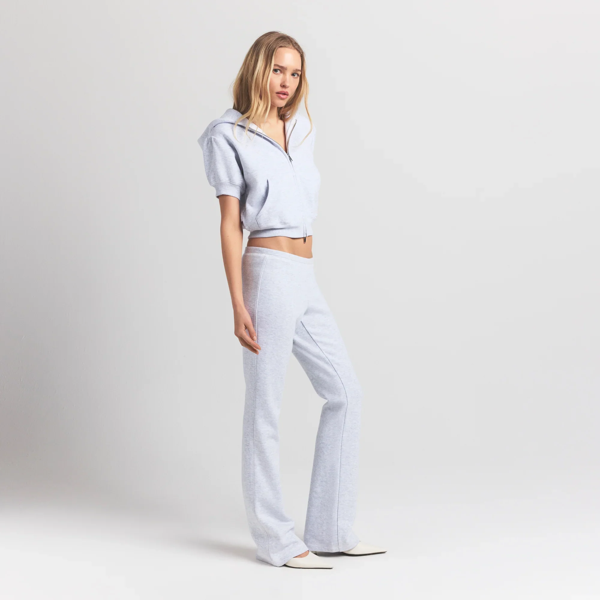 COTTON FLEECE BUBBLE SLEEVE CROPPED ZIP UP | LIGHT HEATHER GREY